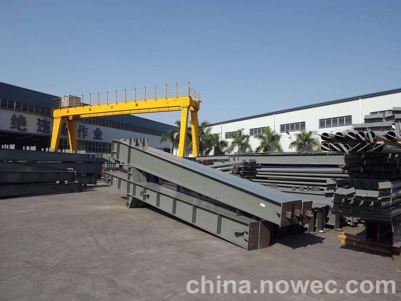 条状单元一般沿长跨方向分割,其宽度约为1~3个网格,其长度为l2或l2/2(l2为短跨跨距)。块状单元一般沿华蓥网架平面纵横向分割成矩形或正方形单元。每个单元的重量以现有起重机能胜任为准。条(块)与条(块)之间可以直接拼装,也可空一网格在高空拼装。由于条(块)状单元是在地面拼装,因而高空作业量较高空散装法大为减少,拼装支架也减少很多,又能充分利用现有起重设备,故较经济。这种安装方法适用于分割后网架的钢度和受力状况改变较小的各类中小型网架,如两向正交正放四角锥、正放抽空四角锥等网架。